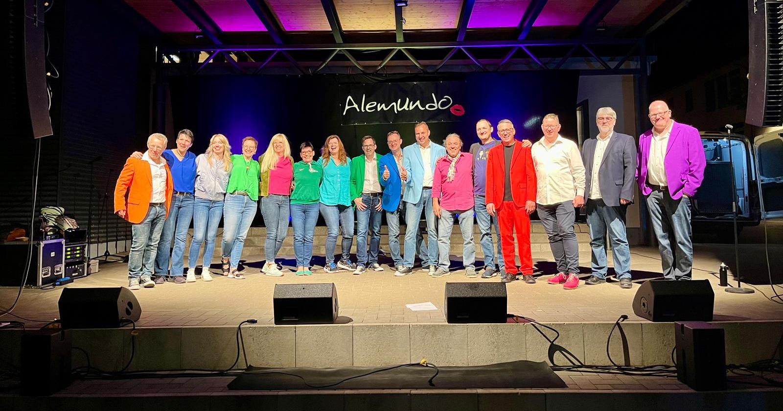 Hübsches Foto von unserem ersten gemeinsamen Gig in voller, neuer, 6-köpfiger Besetzung bei einem Firmenjubiläum in Frankfurt-Sachsenhausen: